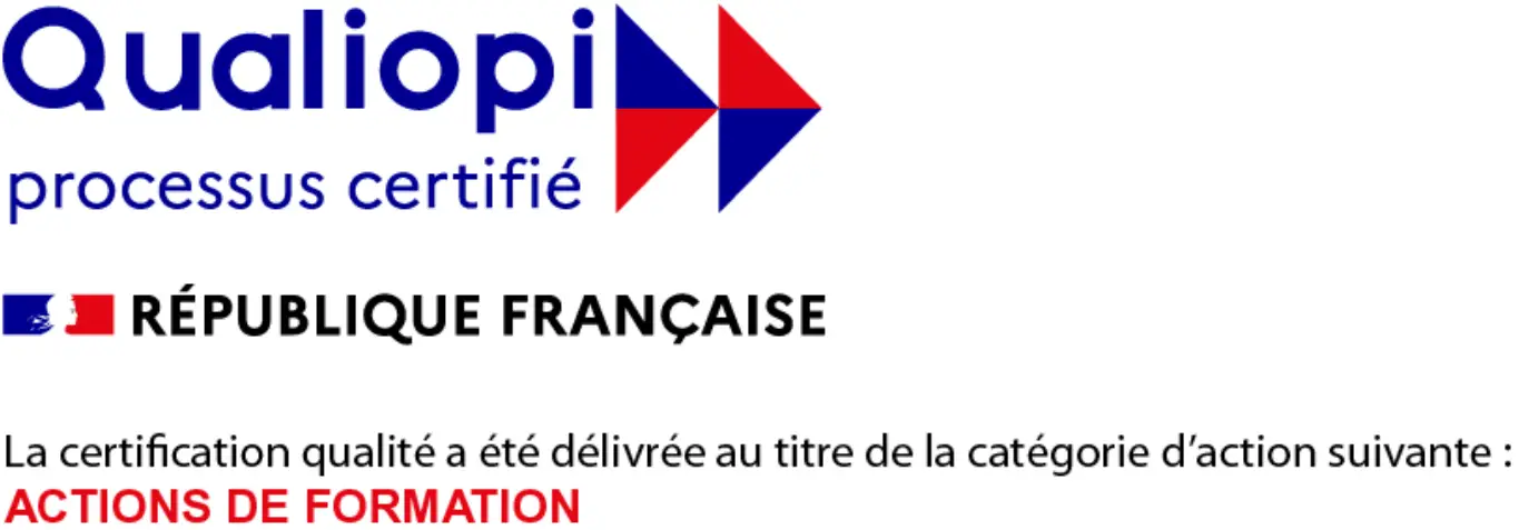 Grâce à notre certification Qualiopi, vous bénéficiez de formations de qualité, répondant aux exigences du Référentiel National Qualité. Cette certification ouvre également la voie au financement partiel ou total de vos formations via les dispositifs publics, tels que les OPCO, vous offrant ainsi une solution adaptée et avantageuse pour renforcer vos compétences et celles de vos équipes.